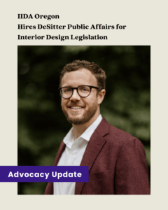 announce the hiring of Louis DeSitter of DeSitter Public Affairs as our lobbyist for interior design legislation. With nearly 16 years at the heart of Oregon politics, Louis brings deep expertise in both legislative strategy and grassroots organizing. His partnership will be pivotal as we continue advancing legal recognition for the interior design profession.